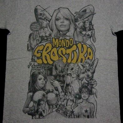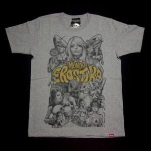 Rockin'Jelly Bean作品"MONDO EROSTIKA"のアートワークをオーバーサイズ気味にプリントしたTシャツです。 Tシャツ本体もUSコットンを使用した7.1オンスの厚手のものになります。 ※実際の商品と画像では多少色味が違って見えますので予めご了承ください。 表記サイズ:実寸サイズ S:肩幅40 身幅47 着丈66 M:肩幅44 身幅52 着丈68 L:肩幅48 身幅56 着丈70(cm) お色:GRAY 素材:COTTON 100%