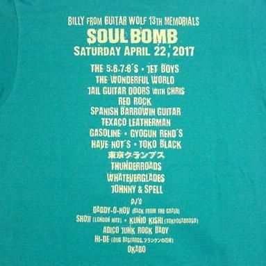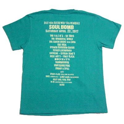 GUITAR WOLFのベースBILLYメモリアルイベント"SOUL BOMB"のTシャツです。 ※実際の商品と画像では多少色味が違って見えますので予めご了承ください。 ※サイズに個体差がある場合がございますので、若干の誤差はご容赦ください。 表記サイズ:実寸サイズ S:肩幅43 身幅49 着丈65 M:肩幅47 身幅52 着丈69 L:肩幅50 身幅55 着丈73(cm) お色:BLUE 素材:綿100