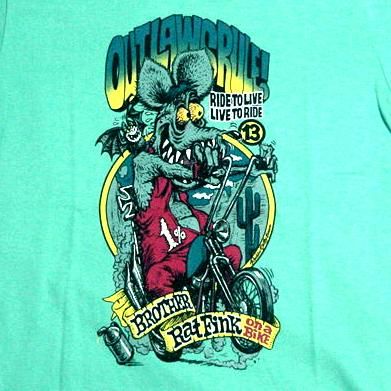 Ed "Big Daddy" Rothの描いたBrother Finkを、Rockin'Jelly Beanが自身のスタイルで描いた"OUTLAWS RULE!"のTシャツです。 Rat FinkとRockin'Jelly BeanのコラボレーションシリーズでMOON OF JAPANの正規ライセンス商品です。 ※実際の商品と画像では多少色味が違って見えますので予めご了承ください。 表記サイズ:実寸サイズ S:肩幅43 身幅49 着丈65 M:肩幅47 身幅52 着丈69 L:肩幅49 身幅55 着丈73(cm) お色:MINT GREEN 素材:綿100