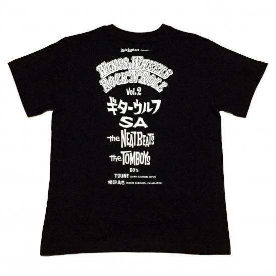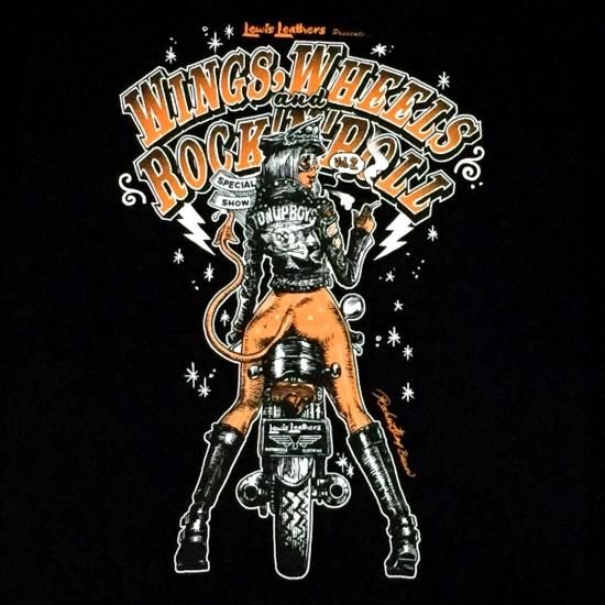 9月13日に行われたLewis Leathersのイベント Wings, Wheels and Rock'n'Roll vol.2のメインビジュアルのTシャツです。 ※実際の商品と画像では多少色味が違って見えますので予めご了承ください。 Designed by Rockin'Jelly Bean 表記サイズ:実寸サイズ S:肩幅43 身幅49 着丈65 M:肩幅45 身幅52 着丈69 L:肩幅50 身幅55 着丈73(cm) お色:BLACK 素材:COTTON 100%