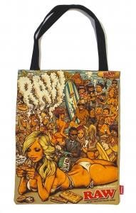 RAW x Rockin'Jelly Beanコラボのトートバッグです。 正面にロッキンジェリービーンのアートワークが全面にプリントされ、 背面にはRAWのロゴがプリントされます。 内ポケットつき。 ※実際の商品と画像では多少色味が違って見えますので予めご了承ください。 サイズ:W300mm x H380mm x D100mm 素材:COTTON 100%