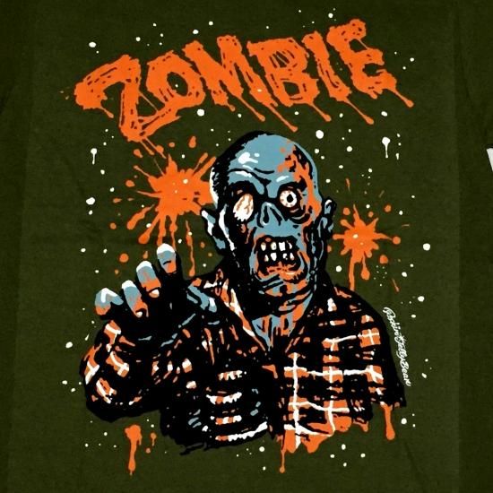 Rockin'Jelly Bean画のアートワーク"PLAID SHIRT ZOMBIE"のTシャツです。 ※実際の商品と画像では多少色味が違って見えますので予めご了承ください。 表記サイズ:実寸サイズ S:肩幅42 身幅49 着丈65 M:肩幅46 身幅52 着丈69 L:肩幅50 身幅55 着丈73(cm) お色:O.D. 素材:COTTON 100%