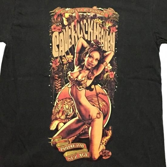 Rockin'Jelly Bean作品「CAVEROCK HEAVEN」のTシャツです。 ※ピグメント染めのTシャツです。洗濯の際に他の衣類と一緒に洗うと色移りする場合がございますのでご注意ください。 ※染めの工程により、寸法は個体差があります。最大1〜2cmの誤差がある場合がございますのでご了承ください。 ※実際の商品と画像では多少色味が違って見えますので予めご了承ください。 表記サイズ:実寸サイズ M:身幅55 着丈68 L:身幅58 着丈71(cm) お色:CHARCOAL 素材:COTTON 100%