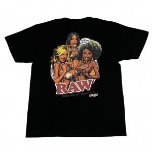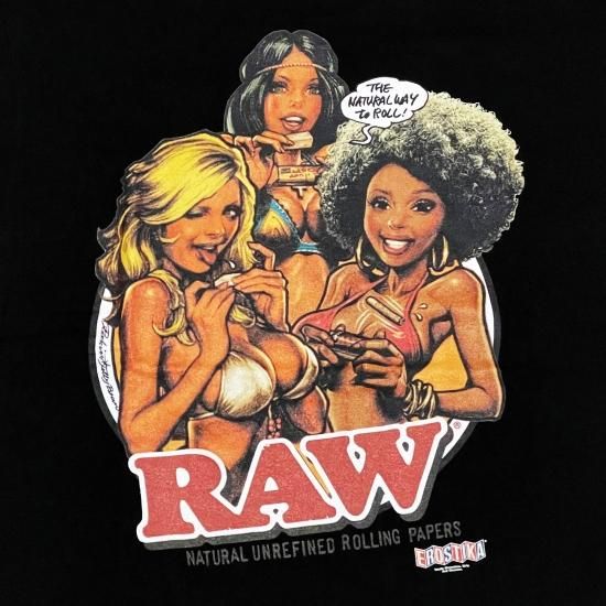 "THREE RAW GIRLS" POCKET Tシャツ  BLACK