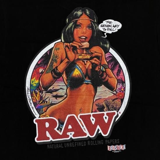 RAWローリングペーパーとRockin’Jelly Beanのコラボレーションアートワークのポケット付きTシャツです。 ※実際の商品と画像では多少色味が違って見えますので予めご了承ください。 ※サイズに個体差がある場合がございますので、若干の誤差はご容赦ください。 表記サイズ:実寸サイズ M:肩幅47 身幅52 着丈70 L:肩幅50 身幅55 着丈74(cm) お色:BLACK 素材:COTTON 100%