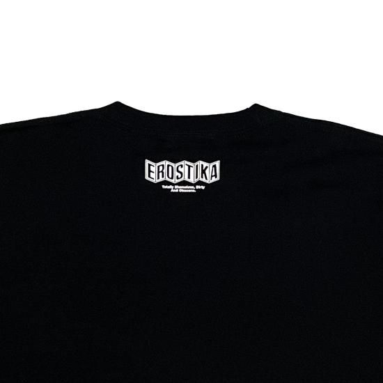 EROSTIKA 18th Anniversary作品 MISTRESS OF THE GALAXY 銀河性暦2711年 銀河の支配をたくらむ女宇宙人Wu-Zett。 彼女はその絶大な性欲を武器に銀河中の男をたぶらかそうと目論み、各惑星を襲ってはその支配下へ治めてきた。 これまで銀河の統治を任されてきた惑星vajayjayは、Wu-Zettの手下Mulan率いる女戦士軍団に攻め込まれ、 男たちはその色気とおっぱいビームによって全滅。惑星vajayjayのルネ姫はなんとか惑星を脱出。 Wu-Zettを倒して故郷を取り戻すため、ロボットH-0249と共に古くからの言い伝えにあった聖剣エレクトカリバーを探す旅に出る。 DISCOVER ERECTCALIBUR! AND DEFEAT THE EVIL MISTRESS TO SAVE THE GALAXY! EROSTIKA18周年にロッキン・ジェリビーンが描いた作品[MISTRESS OF THE GALAXY] は、 まさかのフレッシュゴードンmeetsバーバレラといういかにもジェリービーンらしいテーマの元に出来上がった。 そのせいもあって、デザインも60年代を意識したものになっており、シリーズの中では珍しい仕上がりになっている。 そしておもちゃ好きには説明不要のSECRET BASEオリジナルロボットH-0249も登場! 果たしてどんな活躍を見せてくれるのか、その勇姿をぜひスクリーンで! ※実際の商品と画像では多少色味が違って見えますので予めご了承ください。 サイズ M:身幅52 着丈69 L:身幅55 着丈73(cm) お色:BLACK 素材:COTTON 100%