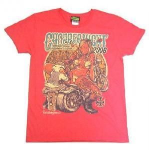伝説のイベント”CHOPPER NIGHT 2008”のポスターデザインをフルカラーでTシャツに落とし込みました。ブラックボディーを抜染後、フルカラーのインクジェットプリントでプリントしてありますので、かなり良い風合いに仕上がっています。 ※ボディは通常のEROSTIKA商品より小さめになっておりますのでご注意下さい。 ※実際の商品と画像では多少色味が違って見えますので予めご了承ください。 表記サイズ:実寸サイズ XS:肩幅33 身幅43 着丈61 S:肩幅40 身幅46 着丈64 M:肩幅43 身幅48 着丈66 L:肩幅45 身幅51 着丈70 XL:肩幅45 身幅53 着丈73 (cm) お色:RED 素材:綿100