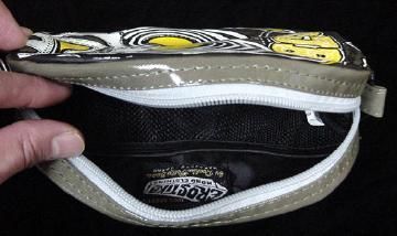 Rockin'Jelly Beanのマスクをかたどった塩ビコーティングのポーチです。容量も大きく、口も大きく開くので非常に使いやすく、中には仕切りポケットがついています。旅行や出張など、バッグ内の小物の整理などに重宝します。女性のお客様にもお勧めです。白でプリントされている部分は畜光プリントになっています。 サイズ 実寸サイズ:185 x 135(mm) お色: GRAY 素材:PVC Cotton