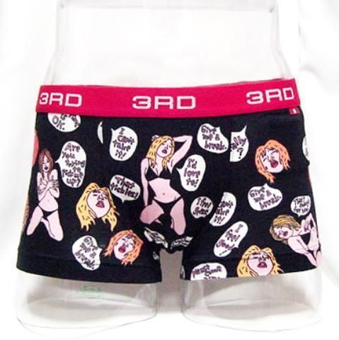 パンツ?ショーツ?ブリーフ?トランクス? アンダーウェア、インナーウェアの歴史を変えるブランド「3RDWARE」の作品! みなさまの熱いリクエストにお応えしてリバイバルされました!色々な姿態をした美女?がそれぞれに何事かをつぶやいてます。ちょっとエロくてカワイイ作品です。 3RDWAREのメンズパンツにはコンドームを入れておくポケットが付いています。性が氾濫する現代、AIDS防止への具体的なメッセージです。 SERIES : アートコラボ ARTIST:北村信明 BELTCOLOR:RED QUALITY:綿:92% PU8% サイズ:ウエスト cm(inch) 1:68cm〜76cm(27inch〜30inch) 2:76cm〜84cm(30inch〜33inch) 3:84cm〜94cm(33inch〜37inch)