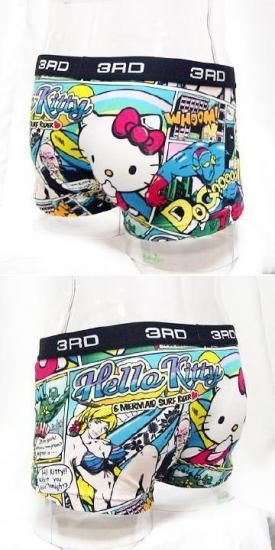パンツ?ショーツ?ブリーフ?トランクス? アンダーウェア、インナーウェアの歴史を変えるブランド「3RDWARE」の作品! サーフボードを抱えたKittyちゃんが悪者たちと戦う姿をアメリカン・コミック風にデザインしました。3RDWAREのメンズパンツにはコンドームを入れておくポケットが付いています。性が氾濫する現代、AIDS防止への具体的なメッセージです。 SERIES : アートコラボ ARTIST:杉山ちあき BELTCOLOR:BLACK QUALITY:綿:92% PU8% サイズ:ウエスト cm(inch) 1:68cm〜76cm(27inch〜30inch) 2:76cm〜84cm(30inch〜33inch) 3:84cm〜94cm(33inch〜37inch)