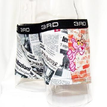 パンツ?ショーツ?ブリーフ?トランクス? アンダーウェア、インナーウェアの歴史を変えるブランド「3RDWARE」の作品! Loose Thoughtデザインの3RDWARE×PINK PANTHERのコラボ作品です。3RDWAREのメンズパンツにはコンドームを入れておくポケットが付いています。性が氾濫する現代、AIDS防止への具体的なメッセージです。 SERIES : アートコラボ ARTIST:Loose Thought BELTCOLOR:BLACK×SILVER QUALITY:綿:92% PU8% サイズ:ウエスト cm(inch) 1:68cm〜76cm(27inch〜30inch) 2:76cm〜84cm(30inch〜33inch) 3:84cm〜94cm(33inch〜37inch)