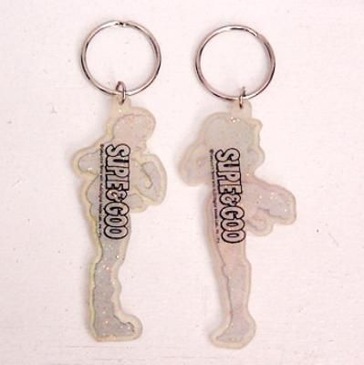 Rockin’Jelly Beanが映像用に描き下ろした”SUPIE & GOO”のキーチェーンセット。SUPIEとGOOのキックポーズ2個セットになります。キーチェーンの素材はクリアのPVCの中にラメをちりばめて有り、宇宙感を表現しています。表面はフルカラーオフセットプリント、裏面はシルクプリントになります。 ※SUPIE & GOO 特製ヘッダー仕様。 ※実際の商品と画像では多少色味が違って見えますので予めご了承ください。 サイズ:SUPIE" - 40 x 87(mm) "GOO" - 32 x 86 (mm) (リング部分除く) お色:PVC (ラメ入り) 素材:PVC
