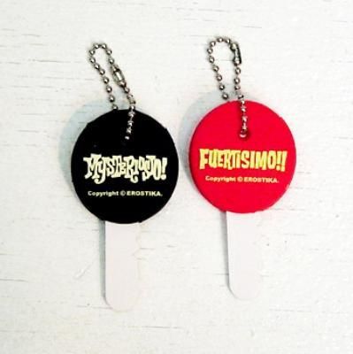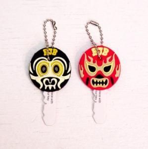 Rockin'Jelly Beanの象徴でも有るルチャマスク。その初代マスクの"FUERTISIMO!!"と2代目マスク"MYSTERIOSIO!"をキーカバーにリデザイン。ダミーのキー(紙製)とボールチェーンが付属しますので、このままキーホルダーとしてもご利用いただけます。2個セットでの販売になります。 ※お持ちの鍵によっては、入りづらい場合もございますので、あらかじめご了承ください。 ※実際の商品と画像では多少色味が違って見えますので予めご了承ください。 サイズ:直径約 30(mm)(ボールチェーンが付属します) お色:RED & BLACK 素材:PVC