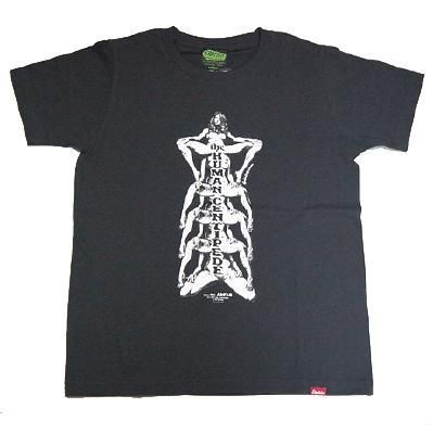 今夏、日本でもついに公開が決まった究極のカルト映画「ムカデ人間」!!アメリカ国内では多数のフォロワーを生み出した本物のカルトホラー! 数々の法的規制や映倫、PTAからの妨害などの困難を乗り越えての上映にこぎつけたのは、キラーコンドームやアメリのヒットなどで知られるプロデューサー叶井俊太郎! 意味はわからずとも伝わる恐怖!スクリーンを通してひしひしと伝わる本物の危ないオーラ! そんな映画のシーンをジェリービーンが描き下ろしたTシャツです! ※ボディは通常のEROSTIKA商品より小さめになっておりますのでご注意下さい。 ※実際の商品と画像では多少色味が違って見えますので予めご了承ください。 表記サイズ:実寸サイズ S:肩幅38 身幅47 着丈64 M:肩幅41 身幅50 着丈68 L:肩幅44 身幅53 着丈71 (cm) お色:INK BLACK 素材:綿100