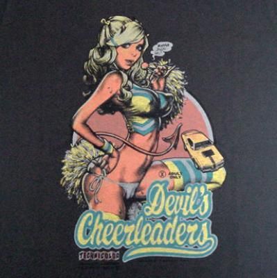 EROSTIKA FILM PRESENTSの2011 ROCKIN'JELLY BEAN最新作"DEVIL'S CHEERLEADERS"のメインビジュアルを落とし込んだ半袖Tシャツです。