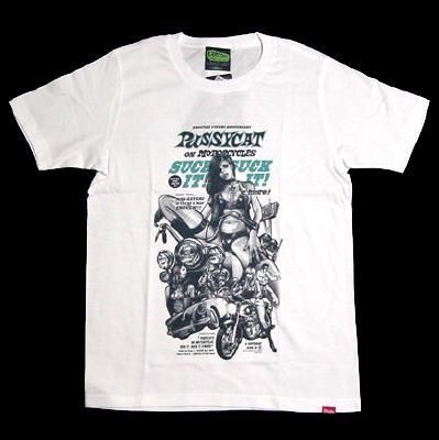 EROSTIKAが満を持してリリースするRockin'Jelly Bean最新作 "PUSSYCAT ON MOTORCYCLES SUCK IT! SUCK IT S'MORE!!"のSS T-SHIRTになります。 ボディは全3色、ぞれぞれプリントカラーが異なります。 ※実際の商品と画像では多少色味が違って見えますので予めご了承ください。 表記サイズ:実寸サイズ S:肩幅40 身幅48 着丈65 M:肩幅43 身幅50 着丈68 L:肩幅45 身幅53 着丈71 (cm) お色:WHITE 素材:綿100