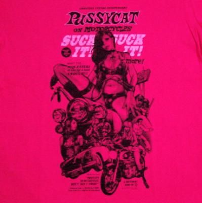 "PUSSYCAT ON MOTORCYCLE " Tシャツ PINK