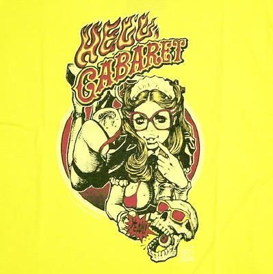 7月に高知で行われたイベントHELL CABARETで使用されたアートワークのTシャツです。 イベントで販売されたTシャツのカラーバージョンとなります。 ※実際の商品と画像では多少色味が違って見えますので予めご了承ください。 表記サイズ:実寸サイズ S:肩幅40 身幅48 着丈65 M:肩幅43 身幅50 着丈68 L:肩幅45 身幅53 着丈70(cm) お色:LIGHT YELLOW 素材:綿100