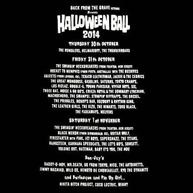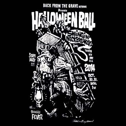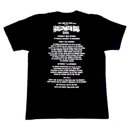 国内最大のガレージイベントBACK FROM THE GRAVE PRESENTS”“HALLOWEEN BALL 2014”のTシャツです。 バックには出演バンド名がプリントされています。 ※実際の商品と画像では多少色味が違って見えますので予めご了承ください。 表記サイズ:実寸サイズ S:肩幅43 身幅47 着丈65 M:肩幅45 身幅50 着丈68 L:肩幅58 身幅53 着丈71(cm) お色:BLACK 素材:COTTON 100%