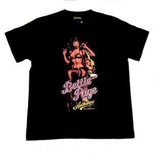 1950 年代に活躍し、今なお50s のアイコンとして知られる永遠のピンナップクイーンBETTIE PAGE をRockin'Jelly Bean が描くBettie Page Anthology シリーズより、"Call Me?"をフルカラープリントしたT シャツです。 ※実際の商品と画像では多少色味が違って見えますので予めご了承ください。 表記サイズ:実寸サイズ S:肩幅43 身幅49 着丈65 M:肩幅47 身幅52 着丈69 L:肩幅50 身幅55 着丈73(cm) お色:BLACK 素材:COTTON 100%