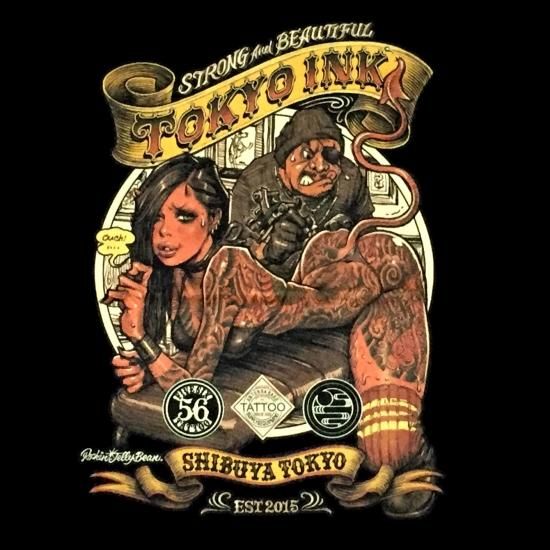 東京タトゥーシーンのパイオニア、渋谷 彫雅こと〈56TATTOO〉KISHIを中心に、トレンドやカルチャーを発信しつづける街、渋谷に新たにオープンしたタトゥースポット「TOKYO INK」とRockin'Jelly BeanによるTシャツです。 ※実際の商品と画像では多少色味が違って見えますので予めご了承ください。 表記サイズ:実寸サイズ S:肩幅44 身幅49 着丈65 M:肩幅46 身幅52 着丈69 L:肩幅49 身幅55 着丈73(cm) お色:BLACK 素材:COTTON 100%