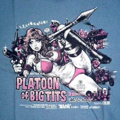 Rockin’Jelly Beanの描くベトナム戦争映画。Platoon of Big Tits のTシャツです。 EROSTIKA 11TH Aniversary作品 Platoon of Big Tits - Me So Horny! ベトナム戦争で劣勢に追い込まれたアメリカが戦地へ送った最終兵器! Platoon of Big Titsが戦いを挑む! 【STORY】 1966年……ダンサーを目指してサンフランシスコで日々を暮らすスージーは、ある日路上で強盗に襲われる。 その危機を救ってくれた謎の女シャーリーとカーク大佐。彼らに出会った事で、スージーの運命は大きく変わった! ベトナムで捕虜となったロッド中尉を助け出すために、プレイメイトに成りすまし、敵地へ潜入するというとんでもない作戦へ参加する事となったスージー。 戦場を駆けるPlatoon of Big Titsの活躍を描くと共に、反戦への思いを込めたErostika渾身の意欲作! ※実際の商品と画像では多少色味が違って見えますので予めご了承ください。 表記サイズ:実寸サイズ S:肩幅44 身幅49 着丈65 M:肩幅46 身幅52 着丈69 L:肩幅49 身幅55 着丈73(cm) お色:SAX BLUE 素材:COTTON 100%